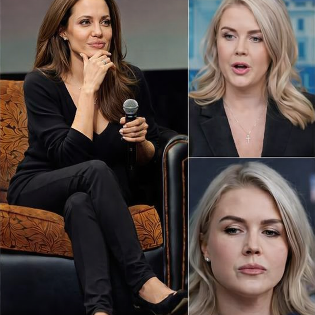 A tense moment unfolded during a live television panel when political spokesperson Karoline Leavitt dismissed actress and humanitarian Angelina Jolie as “just an actress,” suggesting that complex social and economic issues were beyond her understanding. The remark, delivered with visible condescension, was intended to end the discussion quickly. Instead, it triggered one of the most talked-about moments of the broadcast, drawing immediate attention from both the studio audience and viewers at home.